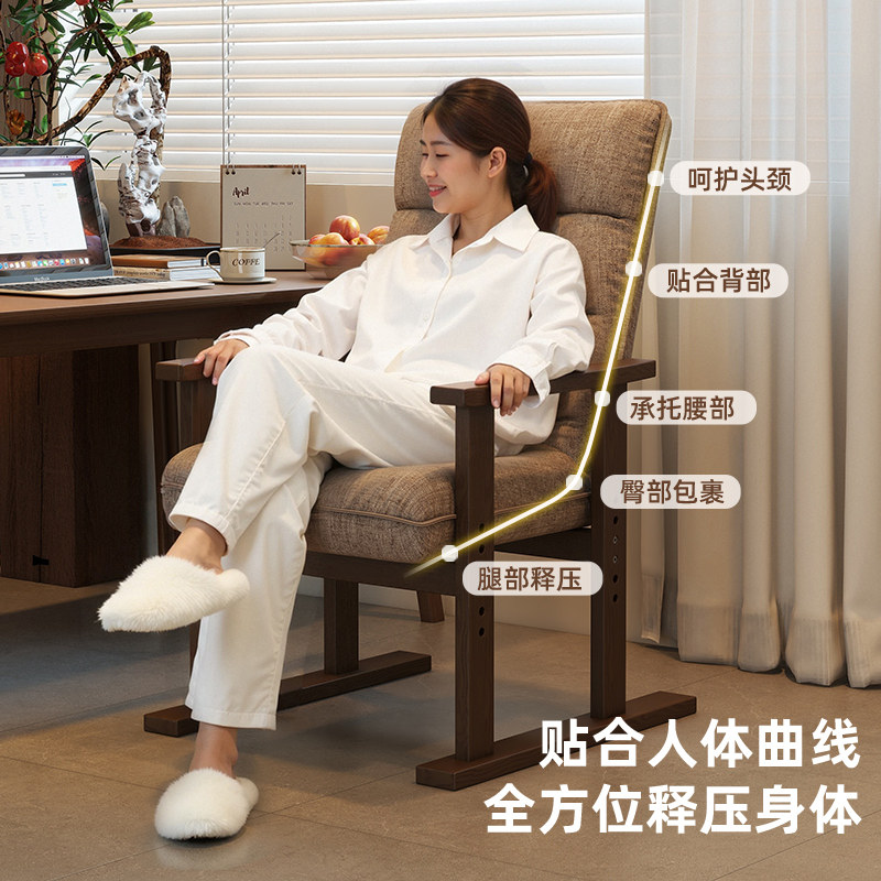实木电脑椅家用舒适久坐沙发椅办公座椅靠背折叠可躺懒人椅子可坐
