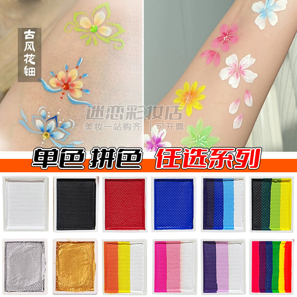 儿童面部彩绘颜料水溶性舞台妆人体彩绘膏出摊热门单色彩虹拼色盘