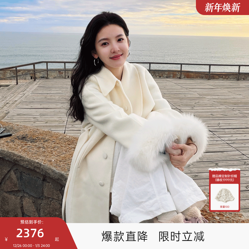 明星同款COCOON可可尼长款毛呢大衣2025冬季新款100%绵羊毛外套