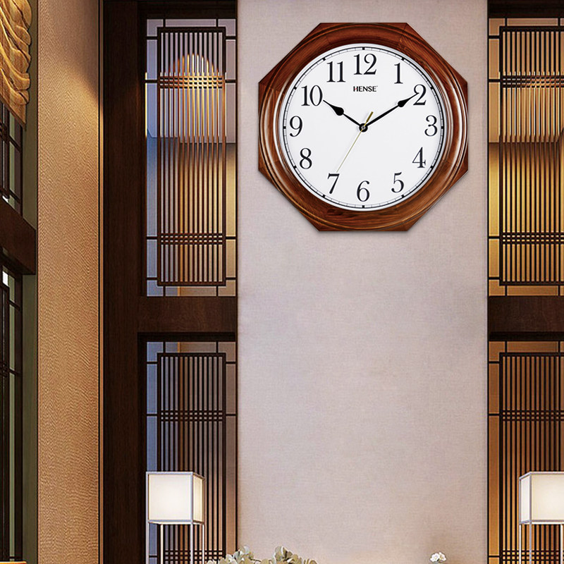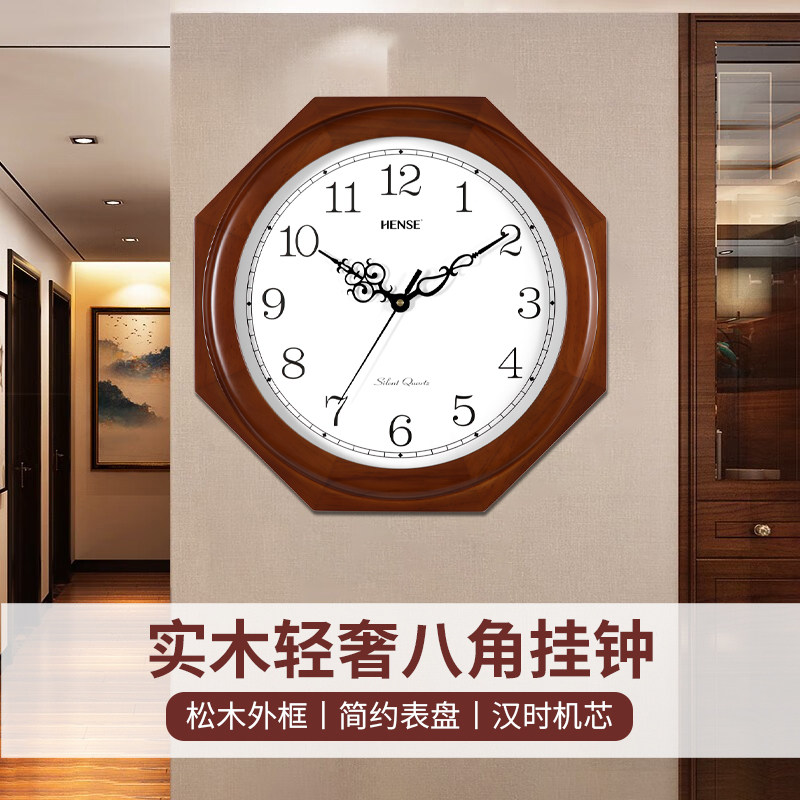 汉时实木挂钟传统复古挂表静音八角钟表石英钟中式客厅大号钟HW85