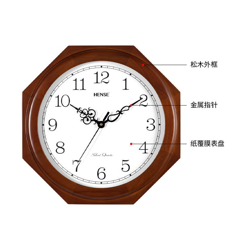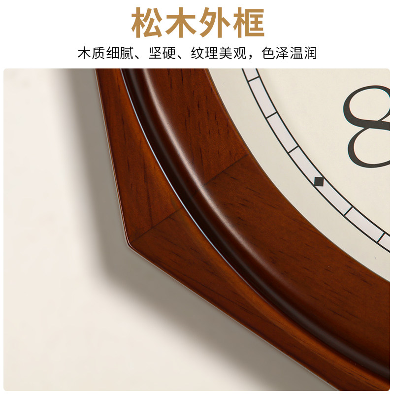 实木外框 静音精准走时 中式创意八角造型钟