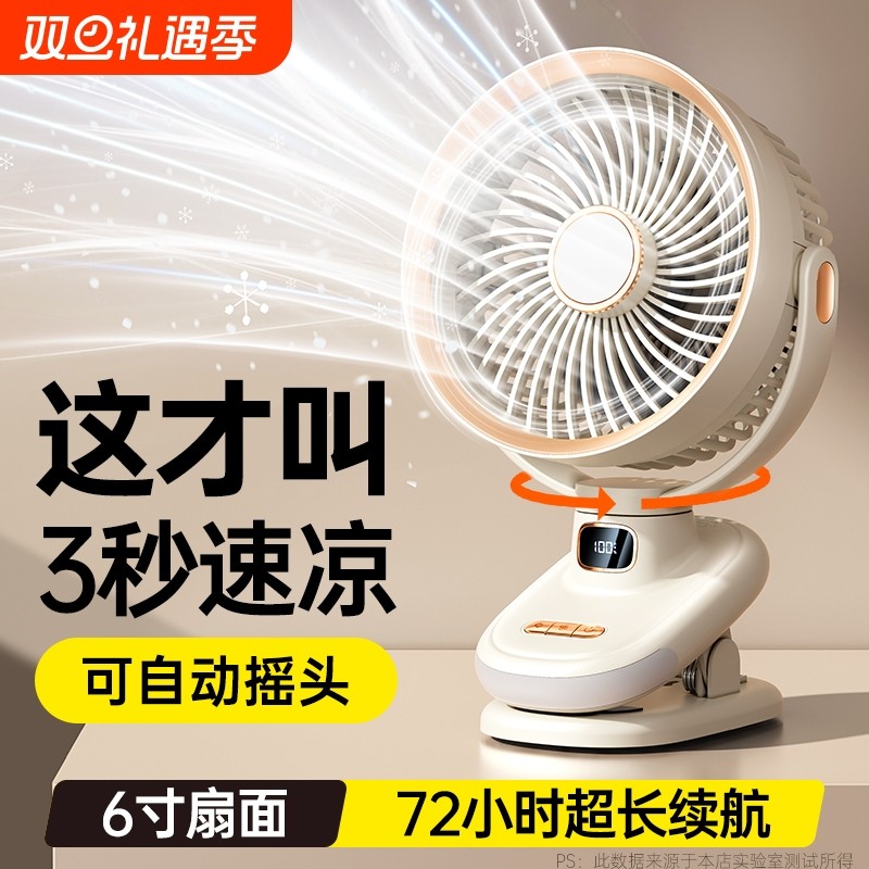 小风扇四叶循环静音夹式usb桌面办公室桌上2025新款电风扇小型学生宿舍床上充电超长续航厨房车载婴儿电风扇
