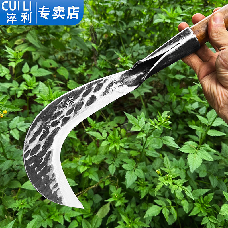 手工锻打砍柴刀全钢镰刀割草刀户外开路砍割两用弯刀农用砍树专用