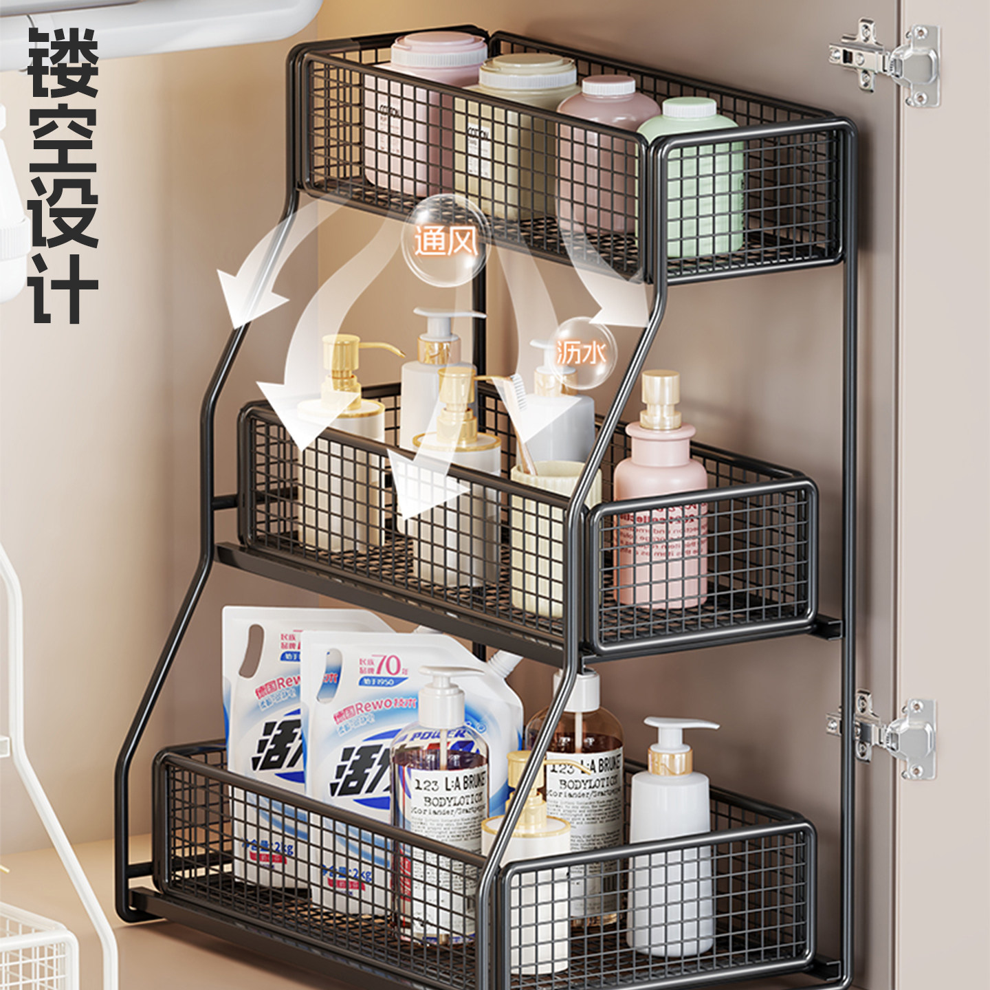 浴室下水槽置物架柜子收纳分层架卫生间洗漱台下多层抽拉式收纳架