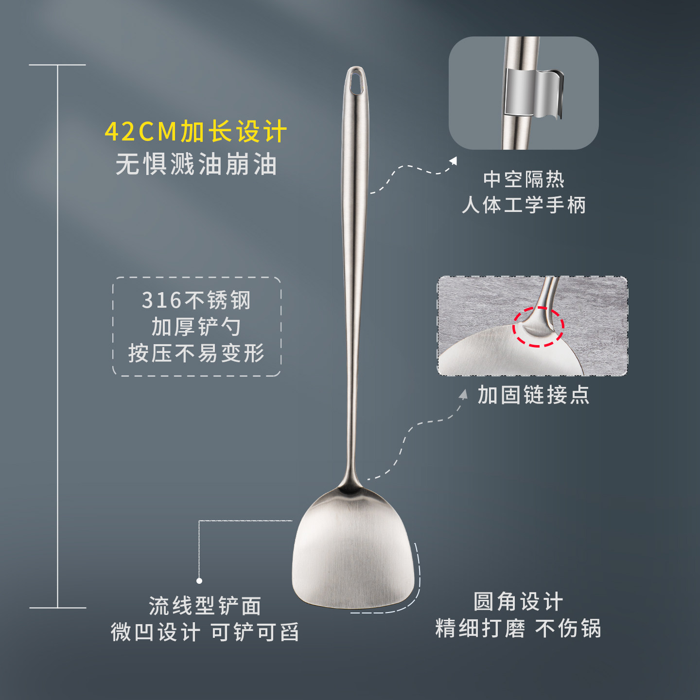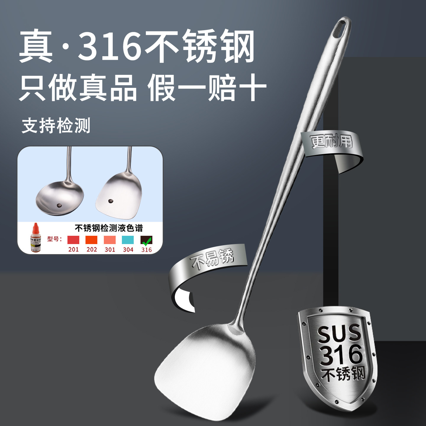 316不锈钢锅铲食品级家用厨房炒菜铲子厨师专用炒勺加厚锅铲套装