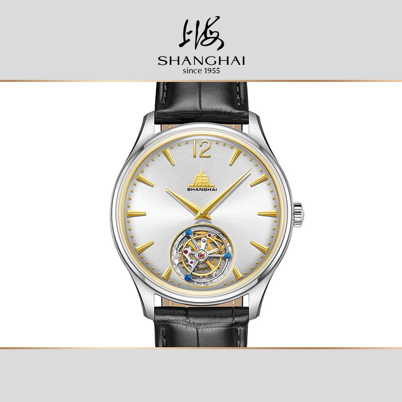 上海手表男表致敬A581系列手动陀飞轮18k金大厦体机械表