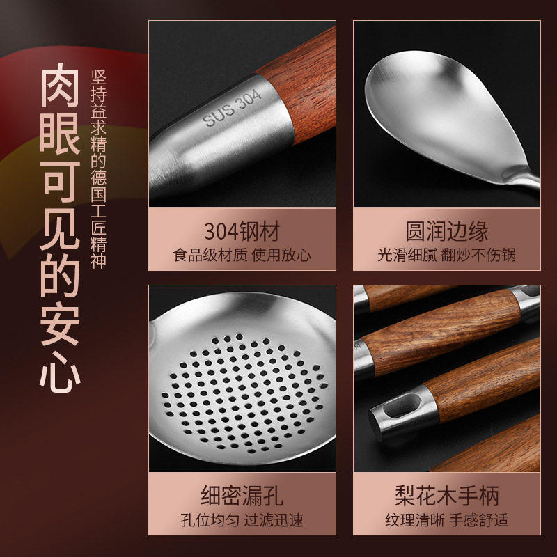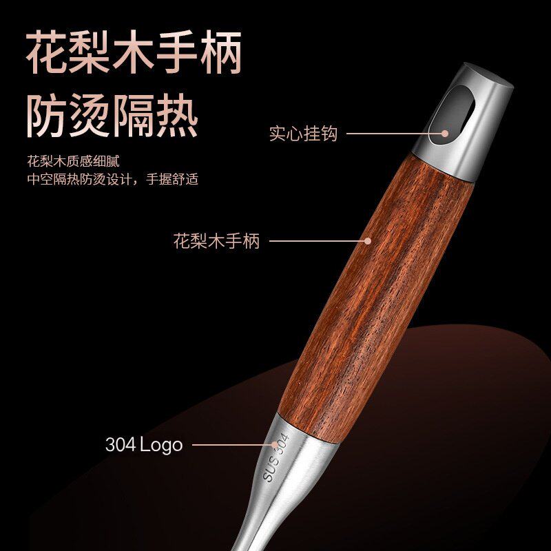 锅铲304不锈钢炒勺长柄炒菜铁锅铲加厚煎铲汤勺漏勺花梨木柄铲勺