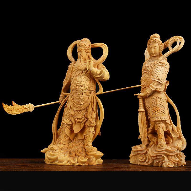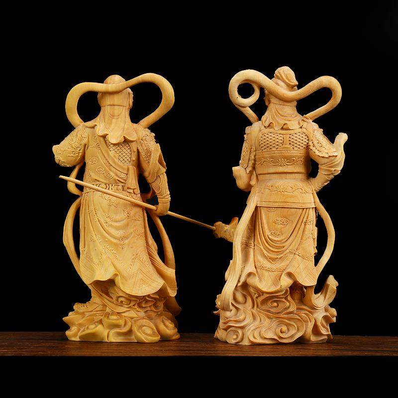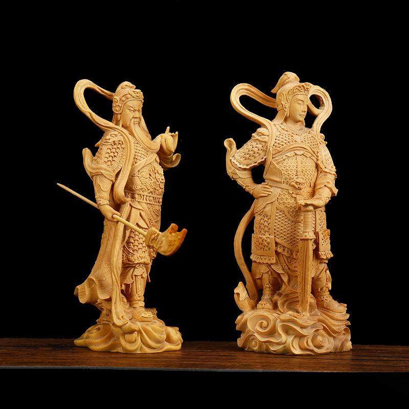 黄杨木雕关公伽蓝韦陀尊者菩萨摆件左右护法神像门神供奉家居饰品