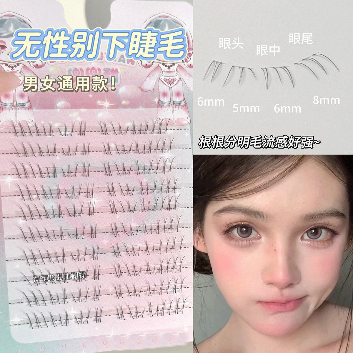 无性别下睫毛假睫毛女自然女团仿真2025新款单簇适合新手胶水款