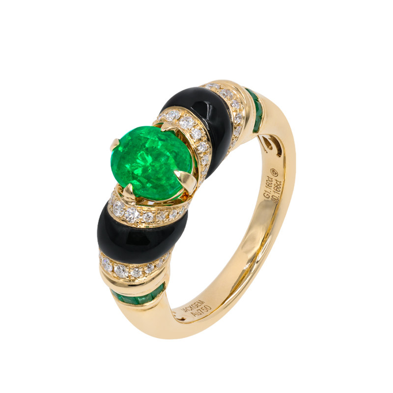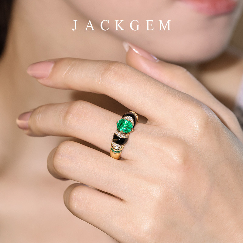 潘杰希尔祖母绿宝石戒指18K金祖母绿戒指女绿钻戒指金首饰珠宝F7