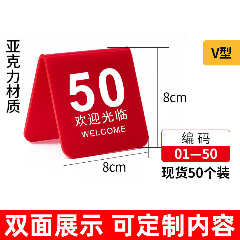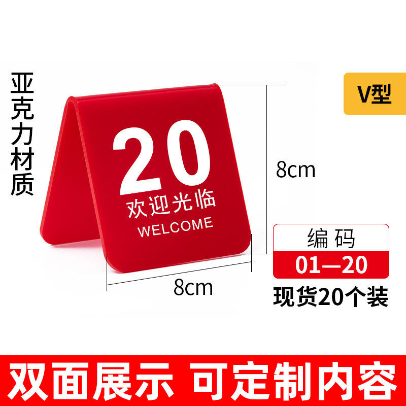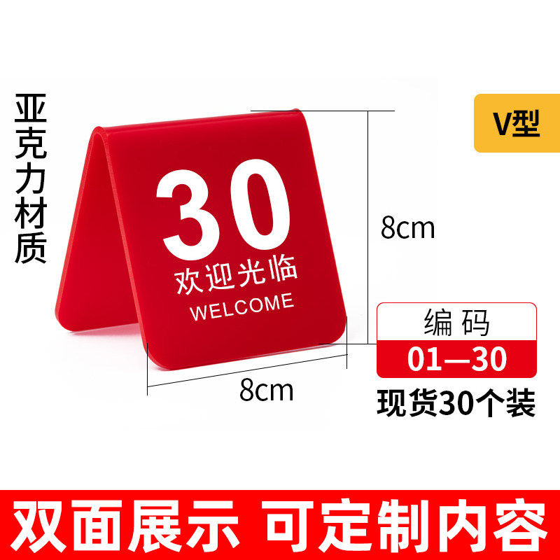 亚克力桌号牌号码牌餐饮桌牌立牌v字型餐桌取餐号码牌台号叫号桌面立牌台卡展示牌双面序号数字牌留位牌定制