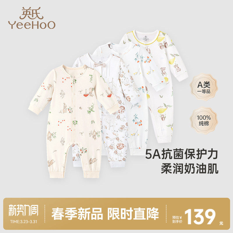 英氏婴儿春季连体衣乳木果宝宝哈衣秋冬新生儿纯棉衣服春秋款爬服