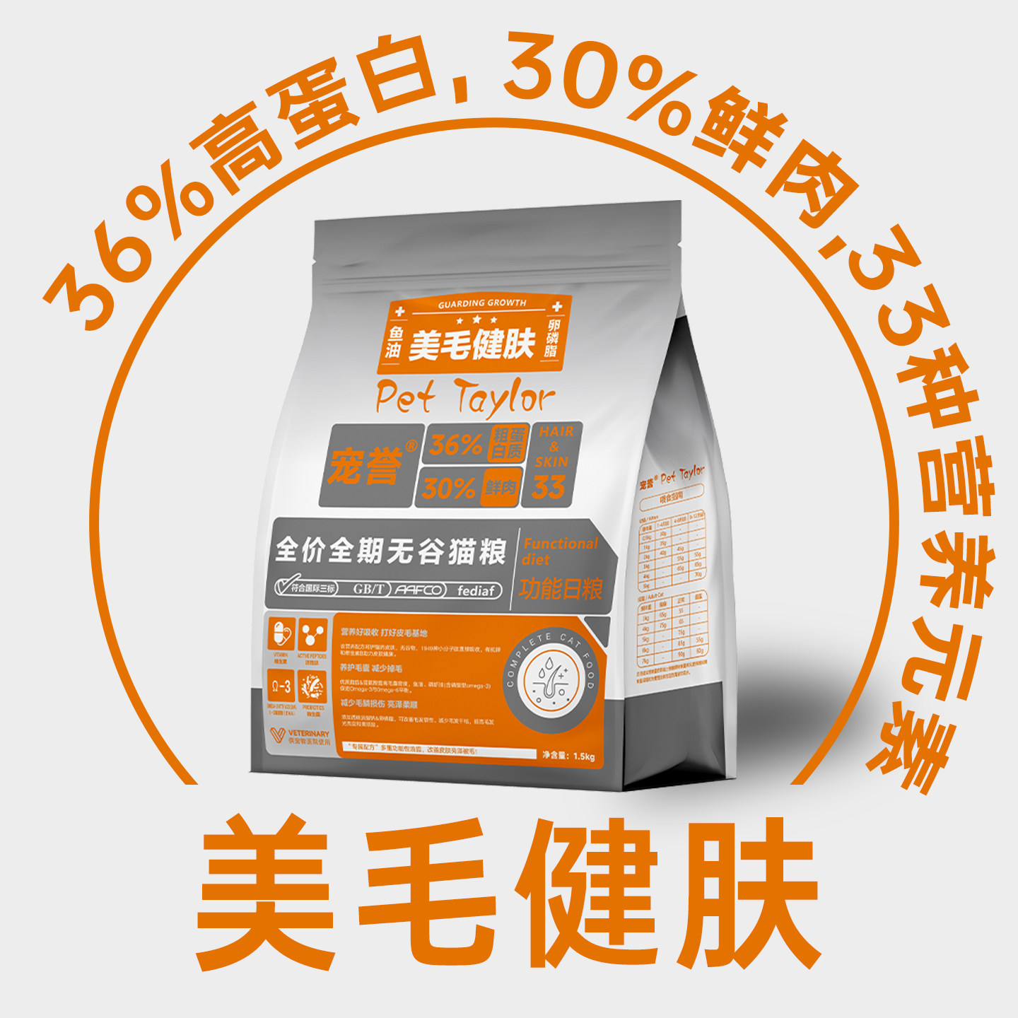 宠誉美毛健肤全价全期无谷猫粮美毛呵护被毛修复成猫幼猫H33主粮