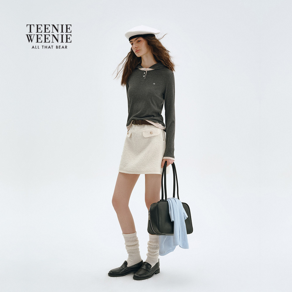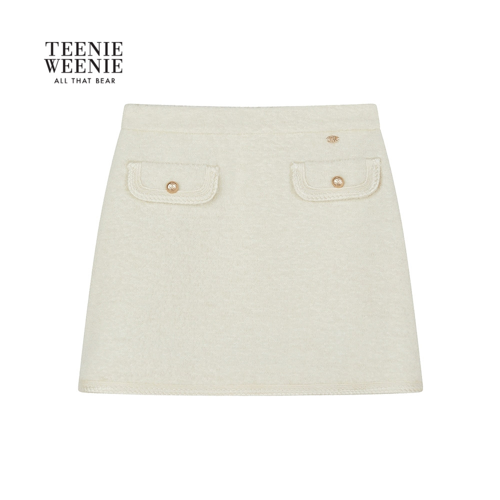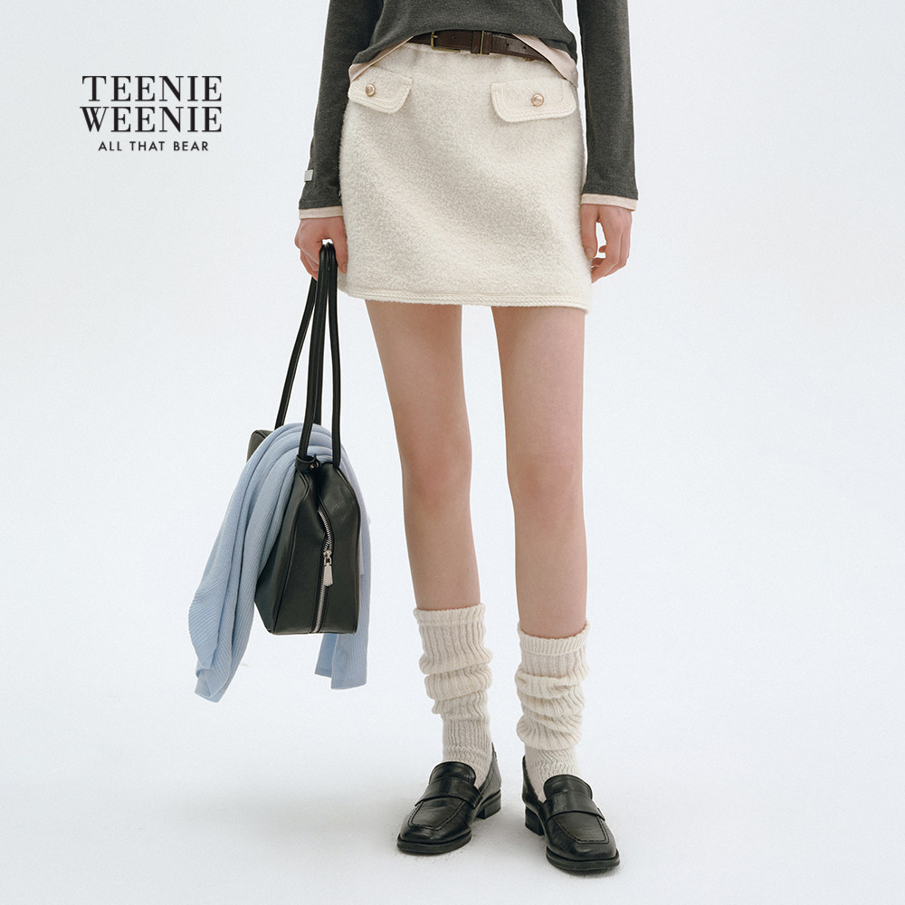 【赵露思同款】TeenieWeenie小熊女半身裙冬A字高腰粗花呢短裙