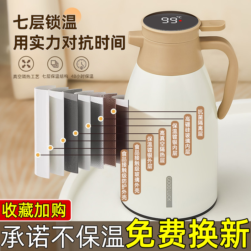 2升保温壶家用暖水壶大容量保温水壶玻璃内胆热水瓶便携保温暖壶