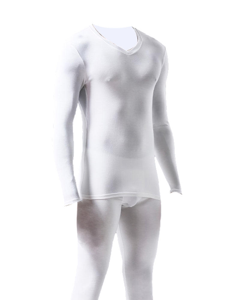 男士莫代尔薄款低领v领修身基础打底衫青年秋衣秋裤保暖内衣套装