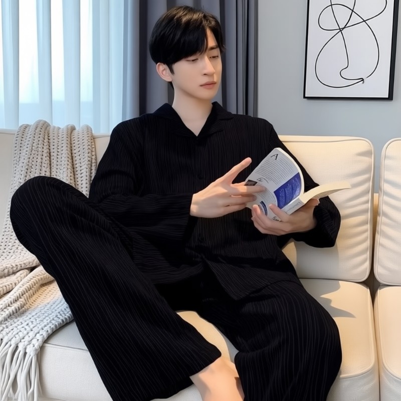 春秋季纯棉睡衣长袖长裤新款男士休闲全棉家居服套装大码可外穿