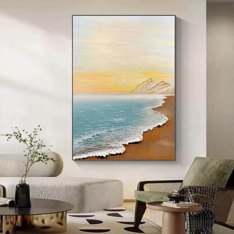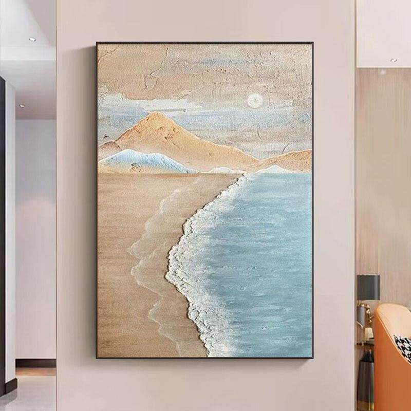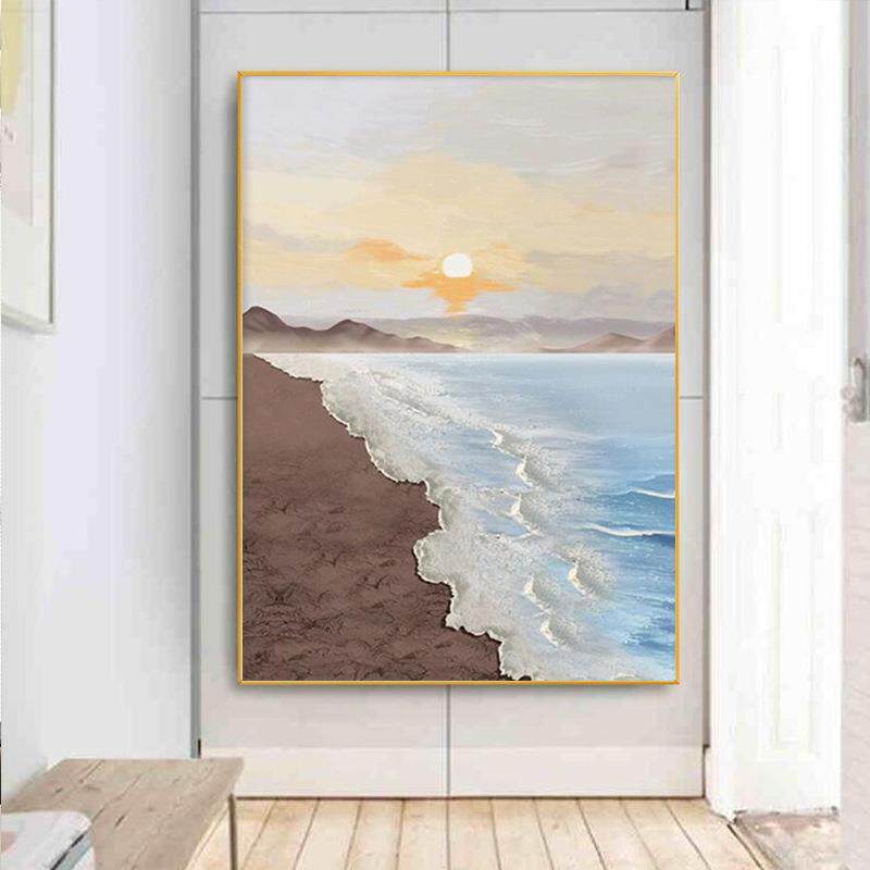 手绘油画轻奢海景客厅玄关装饰画现代砂岩立体肌理画主卧床头壁画