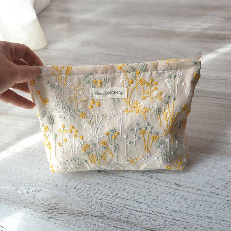 小红书超火刺绣化妆包大容量护肤品姨妈巾收纳袋旅行便捷手拿小包