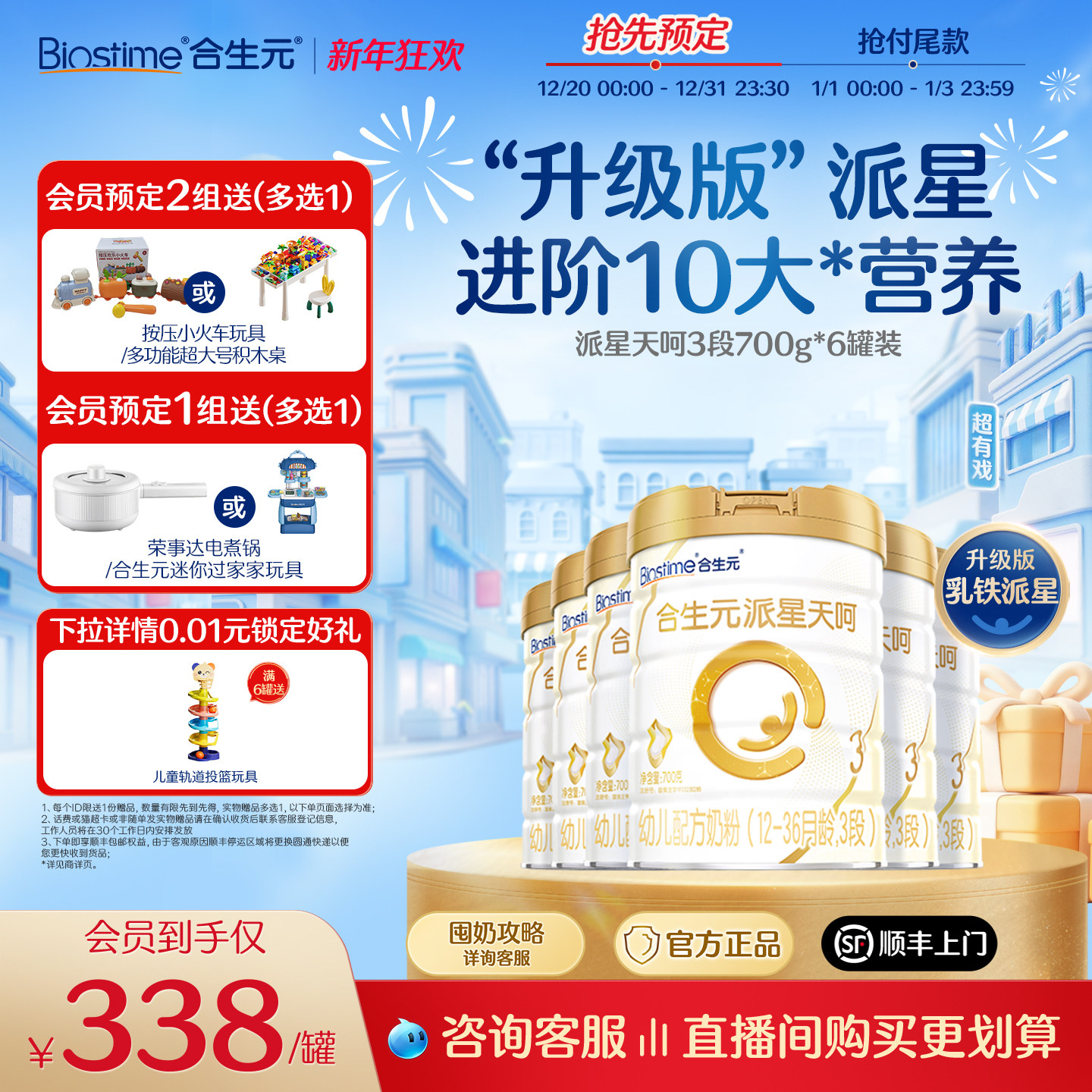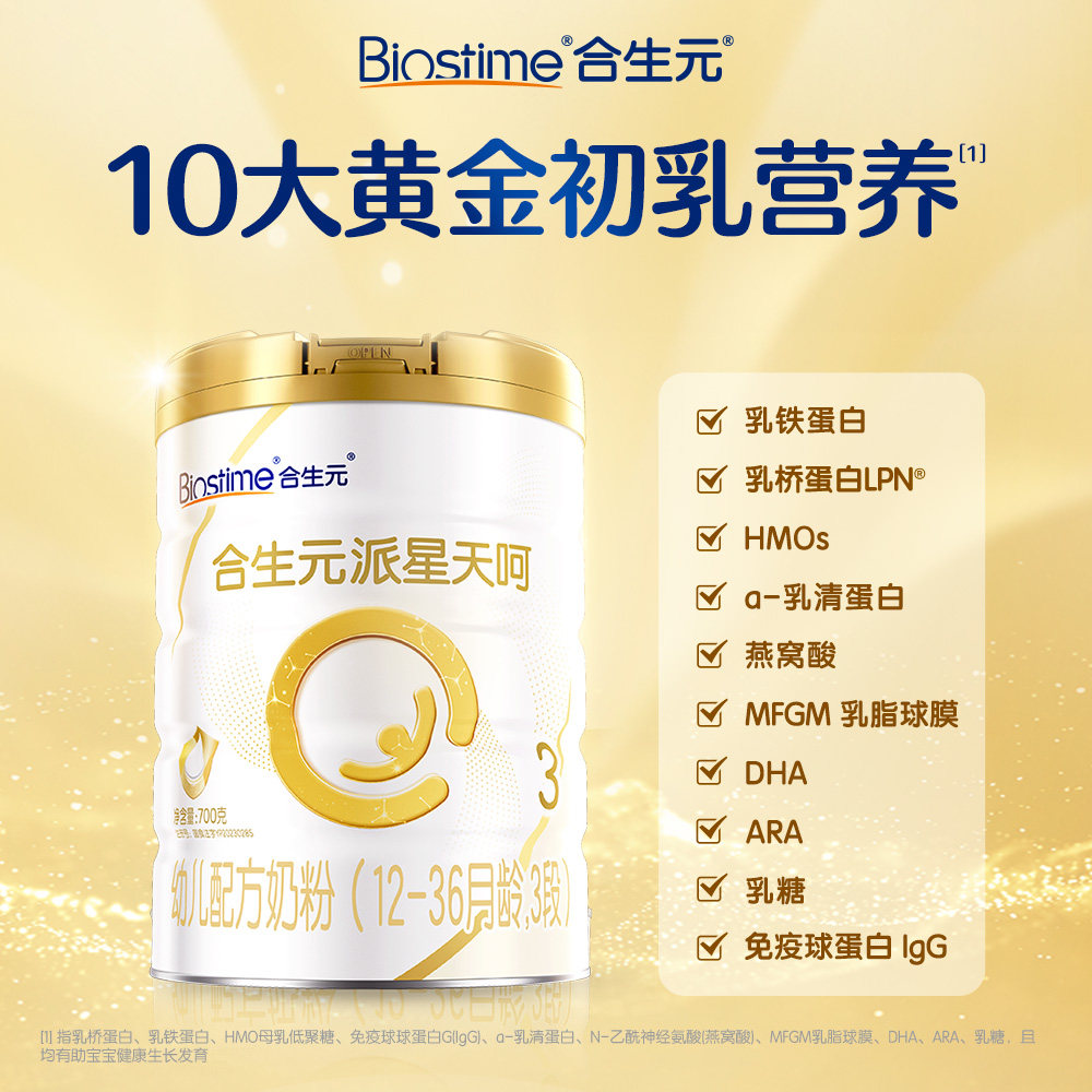 合生元乳铁派星天呵合生元派星天护幼儿配方牛奶粉3段700g6罐