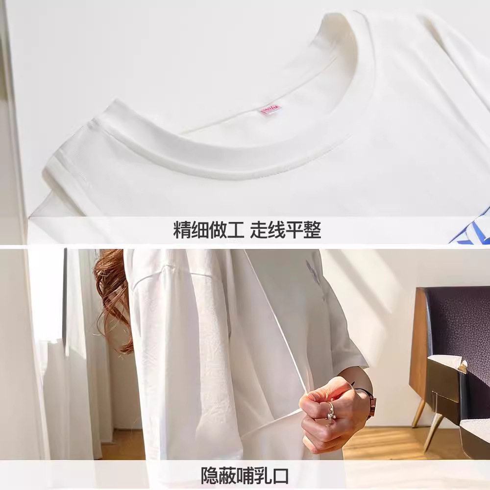 孕妇夏季哺乳衣外出短袖夏天喂奶上衣时尚款显瘦侧开口外穿t恤女