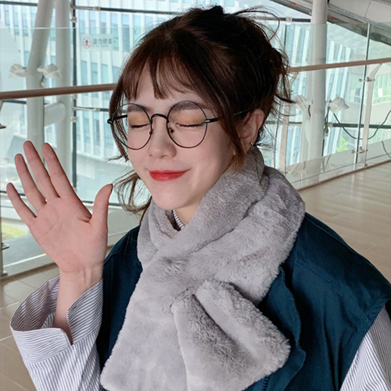 围巾女冬季韩版潮百搭保暖仿獭兔毛毛绒交叉护颈小围脖春秋用毛领