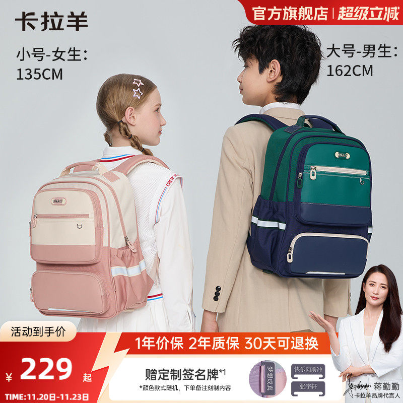 卡拉羊1-4-6年级小学生减负大嘴书包防下坠轻便大容量女双肩包男