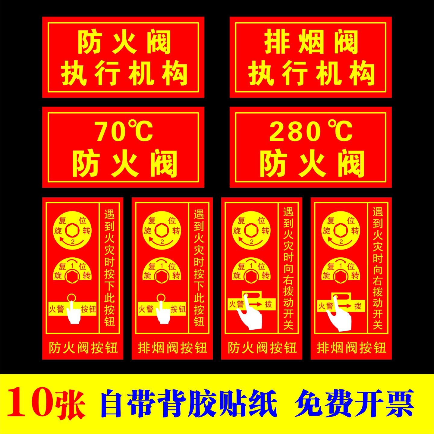防火阀执行机构器标志牌排烟阀按钮标识牌消防70度280℃提示贴纸