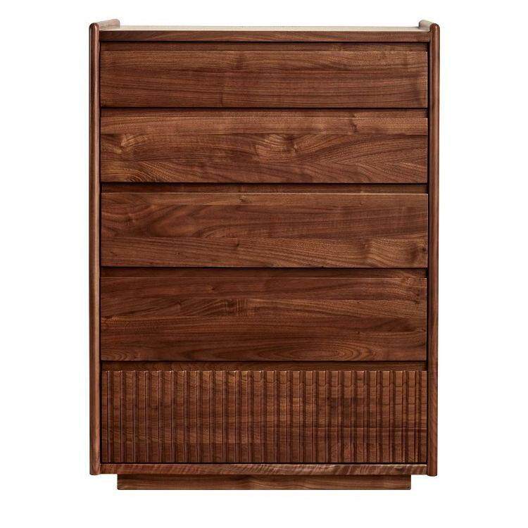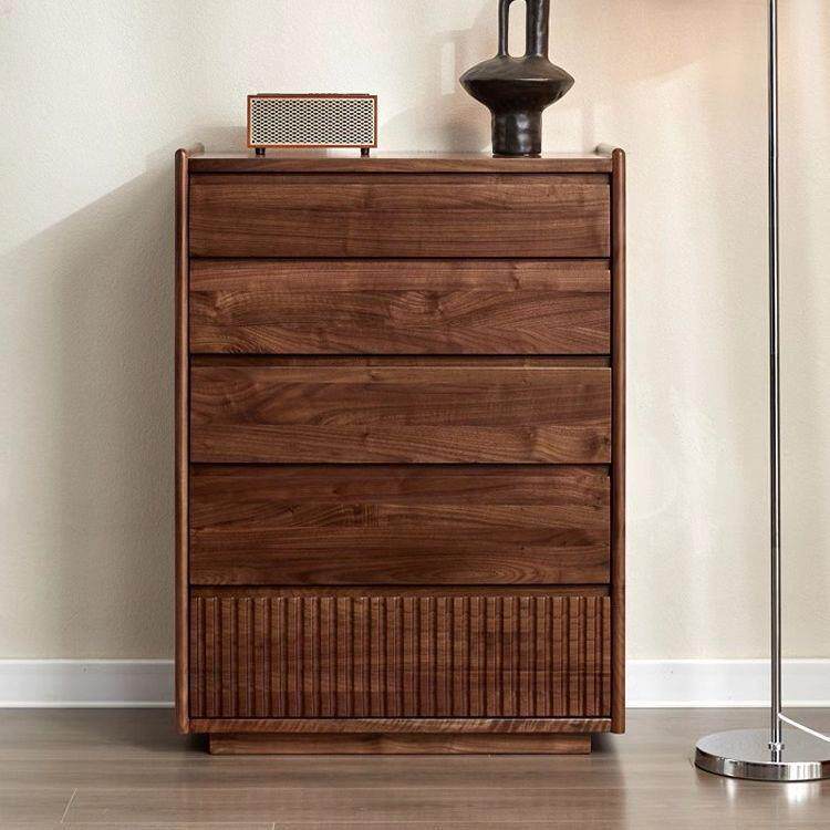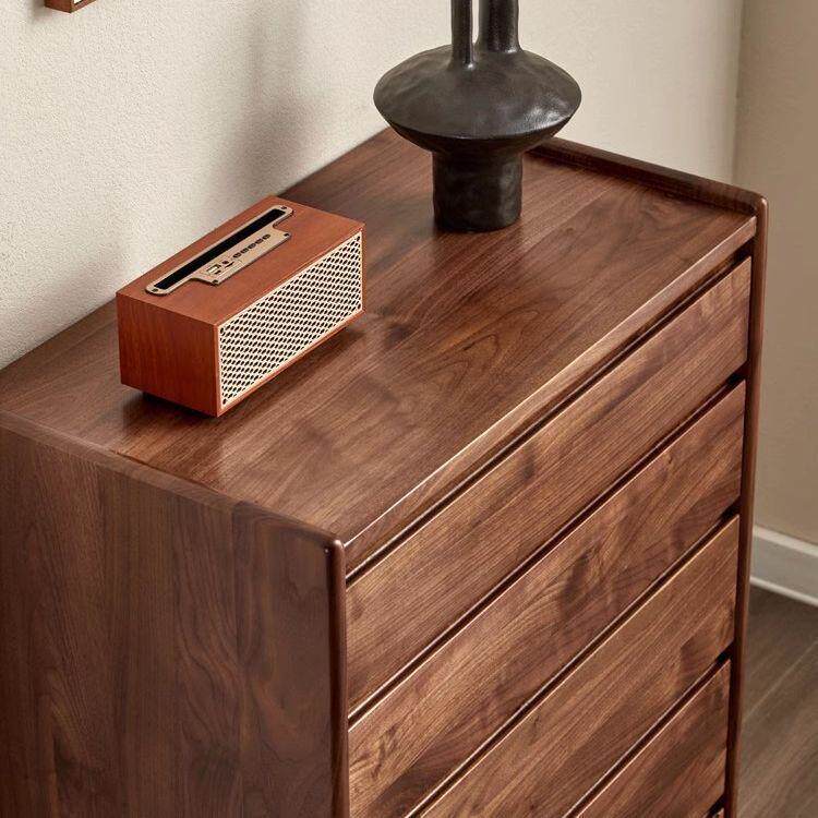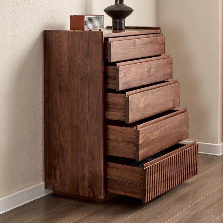北欧日式黑胡桃木五斗柜现代简约实木卧室收纳柜客厅抽屉式储物柜