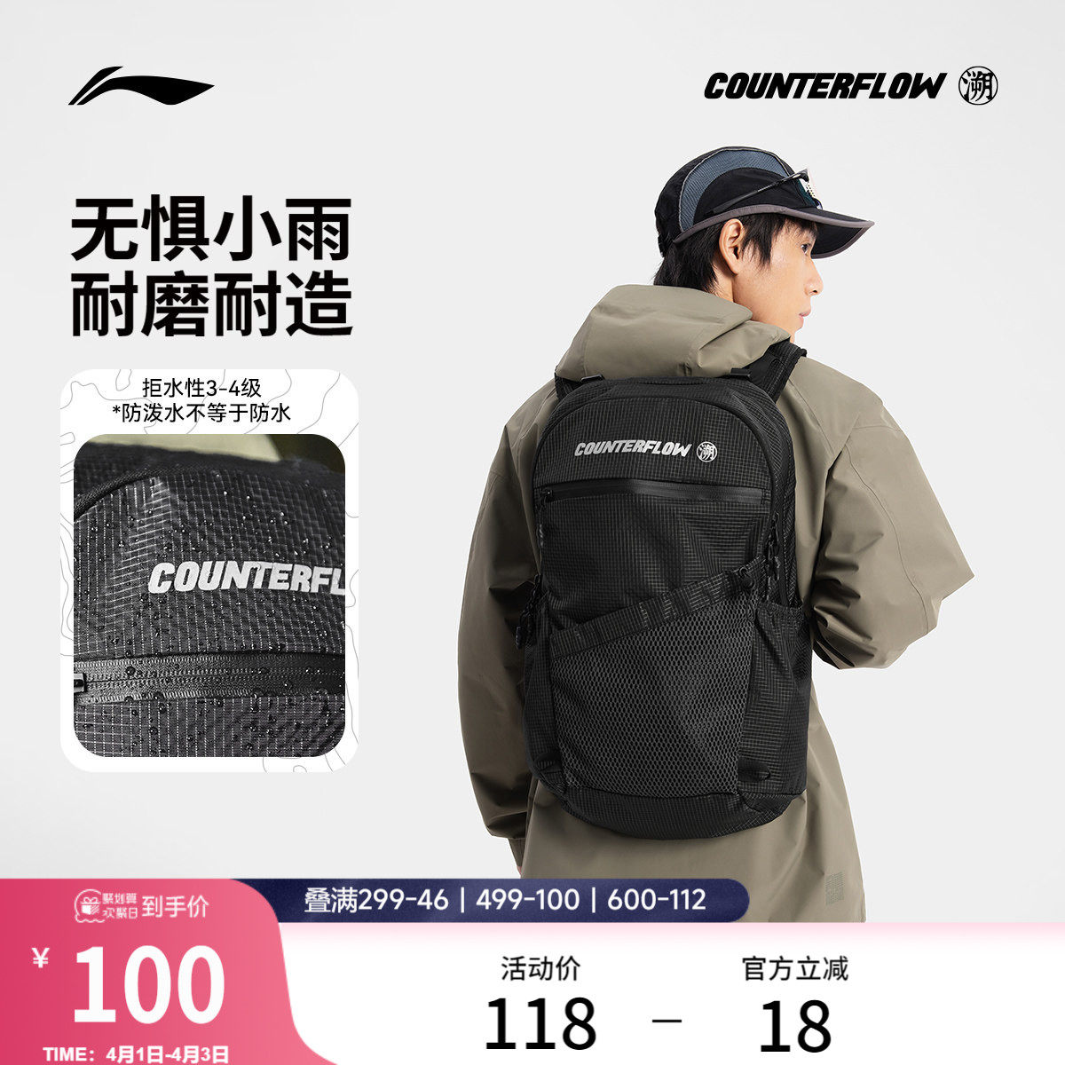 李宁户外CF溯丨双肩包男女背包学生书包时尚潮流简约百搭运动包