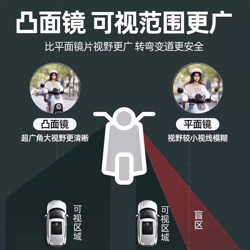 电动电瓶车后视镜自行车圆镜适用雅迪爱玛大视野倒车反光镜子通用