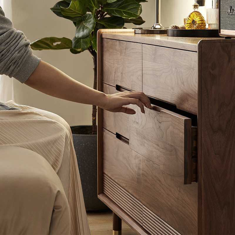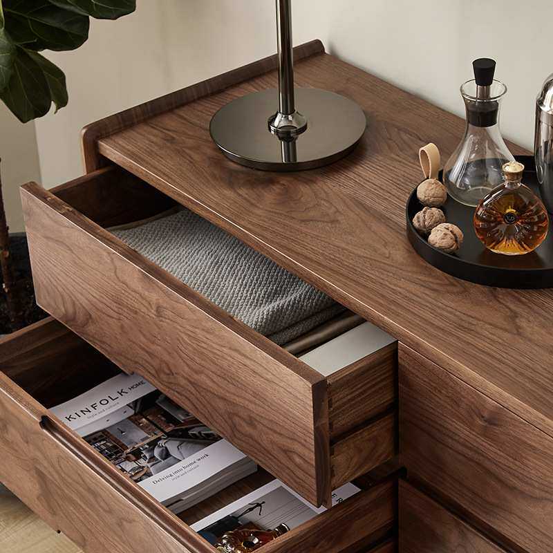 实木六斗柜黑胡桃木卧室储物柜收纳柜日式简约客厅斗柜边柜