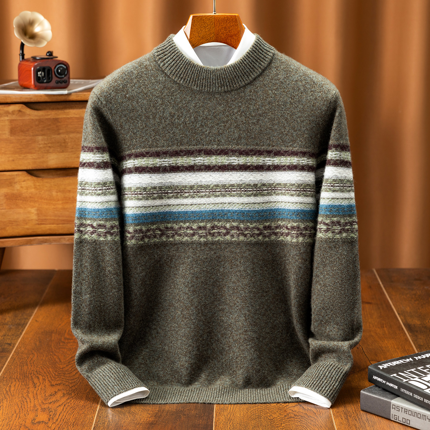 鄂尔多斯市半高领100%纯羊毛衫男休闲中厚保暖毛衣针织打底羊绒衫
