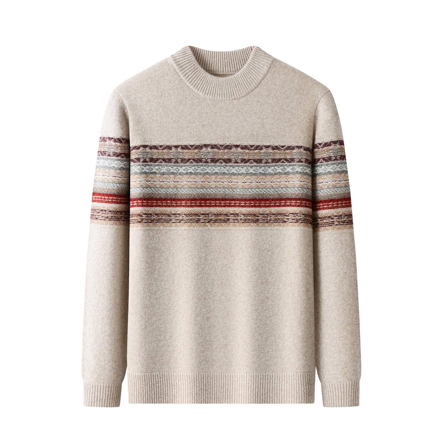 恒源祥圆领羊毛衫男士冬季中年条纹套头毛衣中青年爸爸装打底衫男
