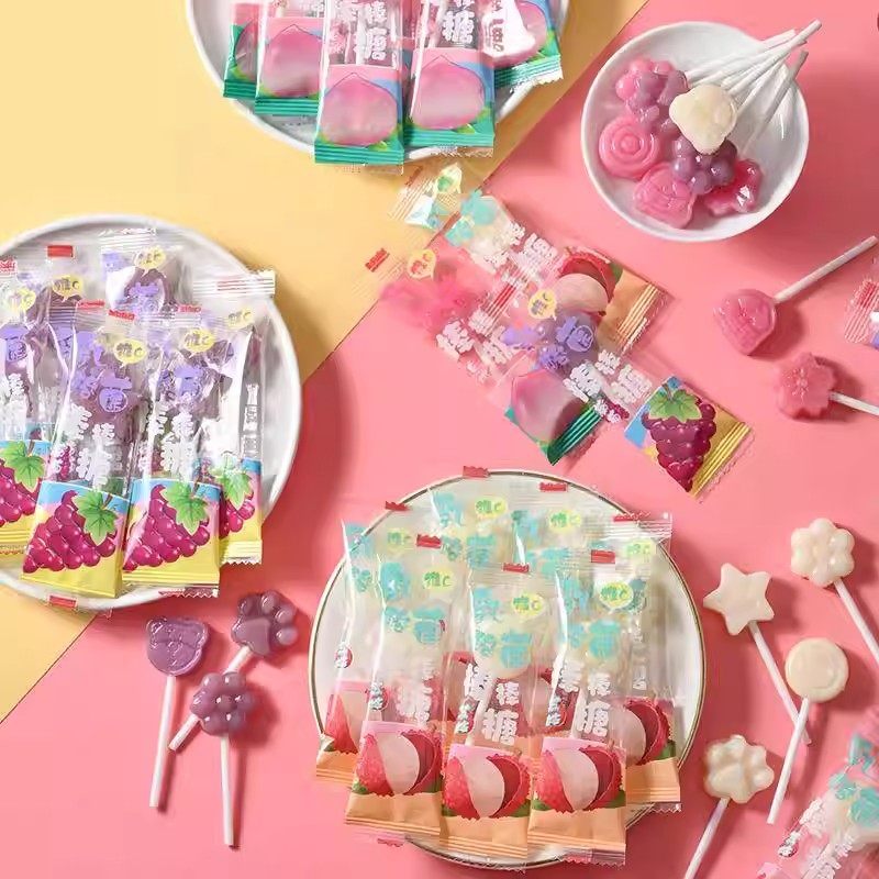 蜡笔小新300g果汁维C棒棒糖袋装水果味儿童糖果零食万圣节圣诞节
