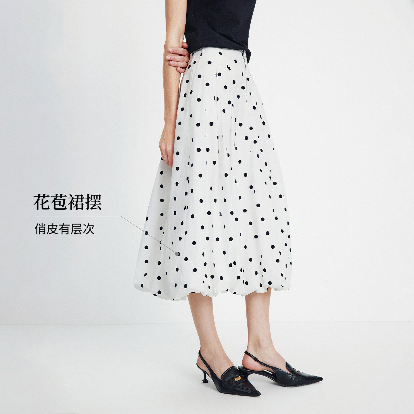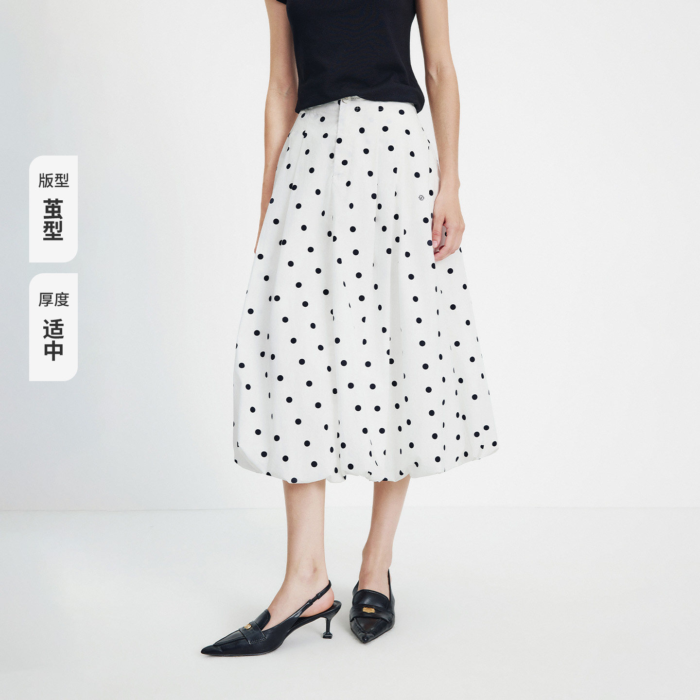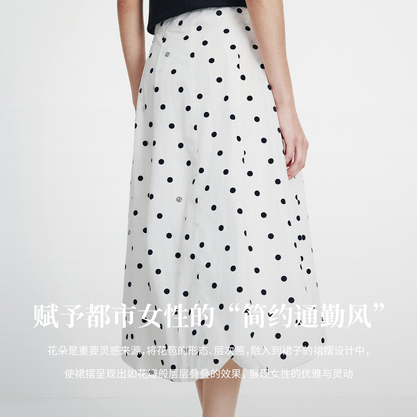 Navigare意大利小帆船纯棉通勤半身裙女2026春夏茧型波点花苞裙
