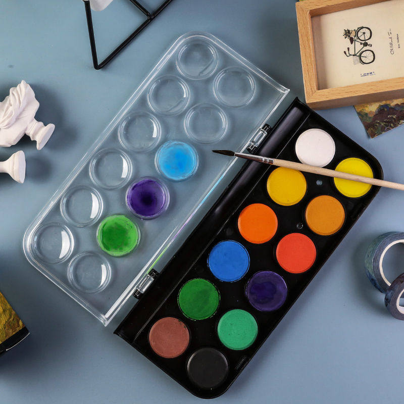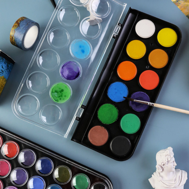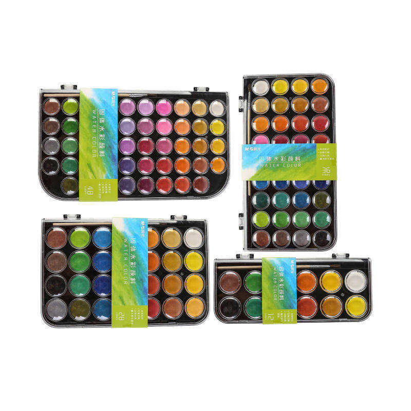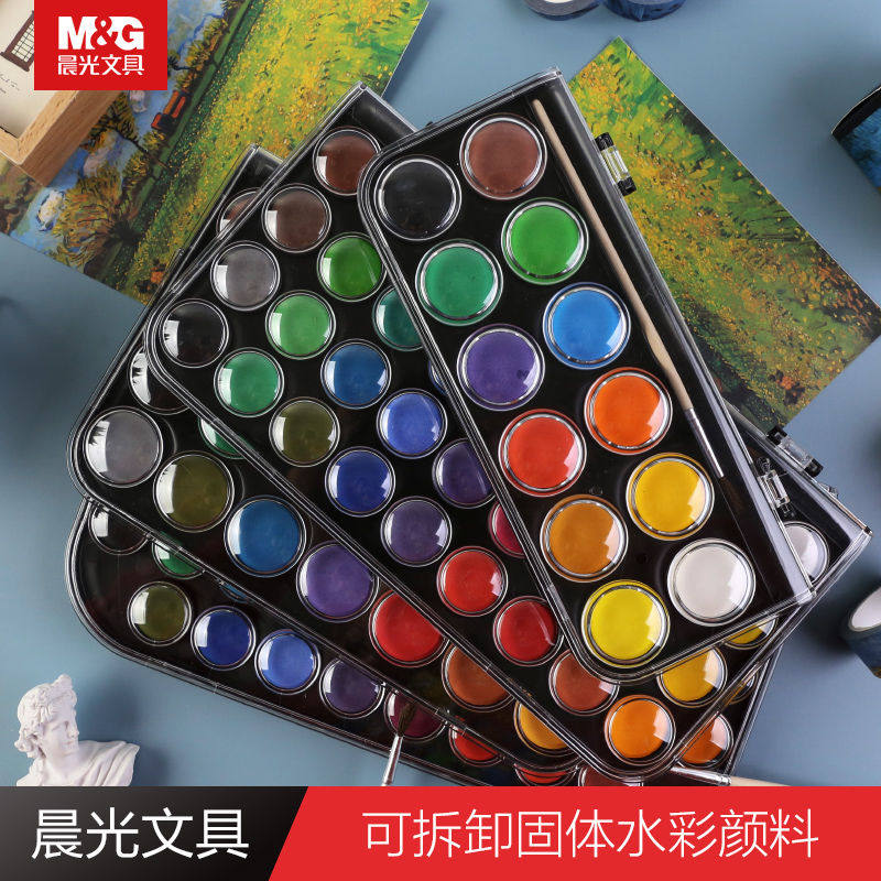 晨光水彩颜料套装初学者幼儿园儿童小学生水彩画颜料手绘画画笔工具套装固体水彩水粉饼可水洗便携式画画颜料