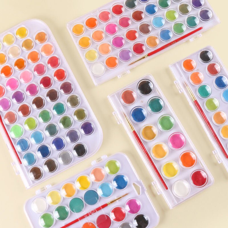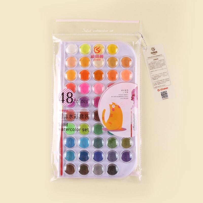 独角鹿固体粉饼水彩颜料 跨境12色28色36色透明水粉颜料绘画套装
