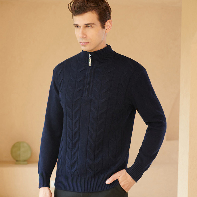 鄂尔多斯市半高领100%纯羊毛衫男休闲中厚保暖毛衣针织打底羊绒衫