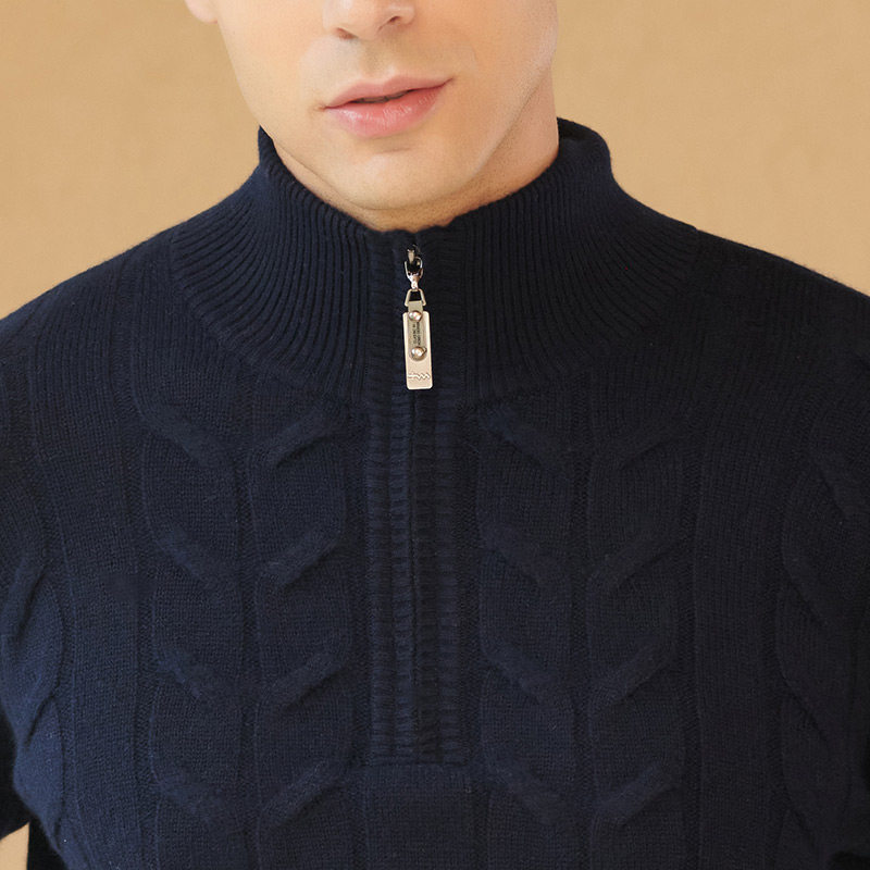恒源祥拉链领羊绒衫男秋冬毛衣高领麻花厚中年打底上衣爸爸针织衫