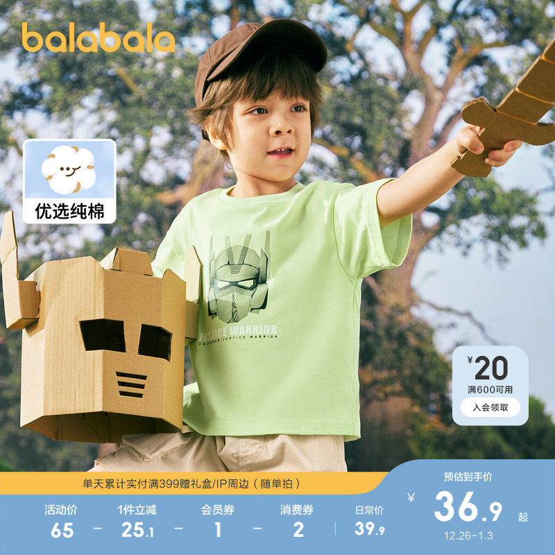 巴拉巴拉童装儿童短袖t恤男童上衣2025春夏装休闲纯棉衣服亲子装