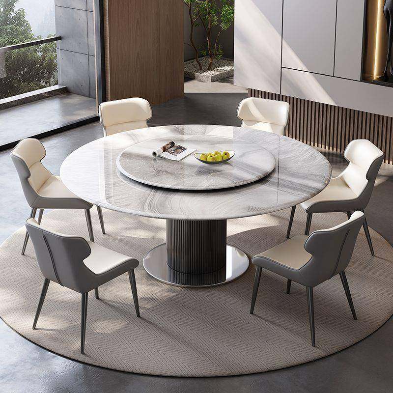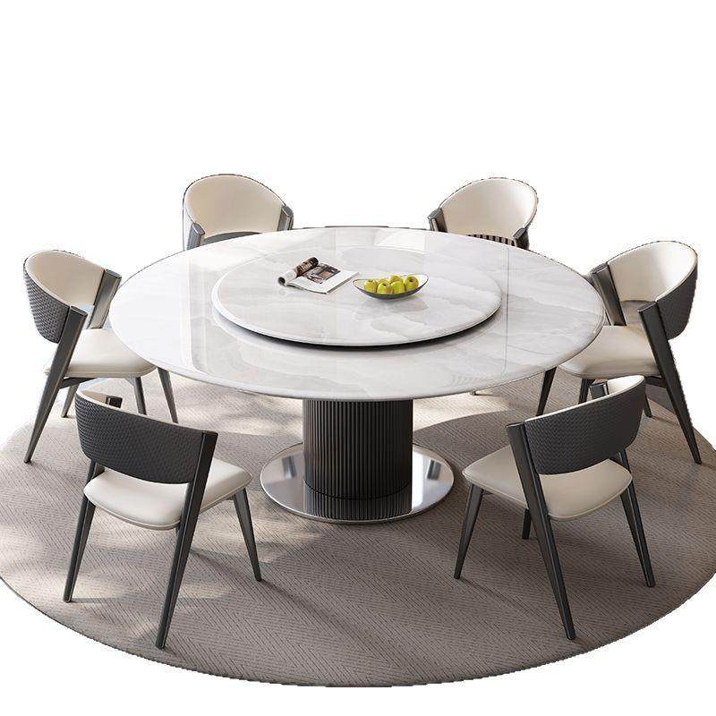 意式极简超晶石餐桌椅组合微晶石奢石饭桌家用大理石圆桌岩板餐桌