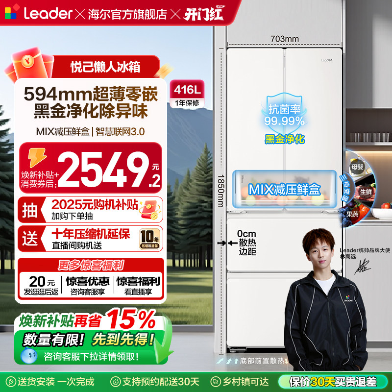 政府补贴超薄零嵌海尔出品统帅悦己懒人436多门四门大容量电冰箱