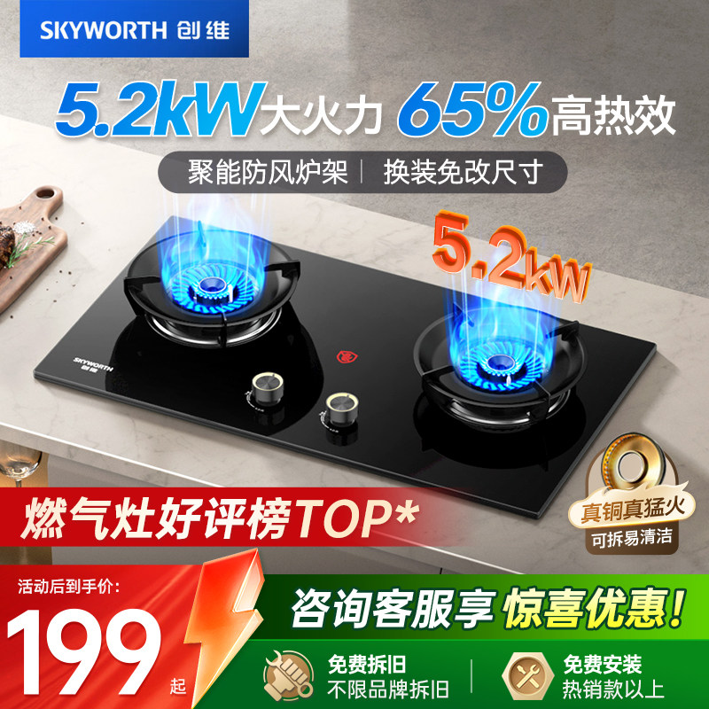 创维燃气灶双灶家用煤气灶猛火灶具液化天然气炉灶台以旧换新补贴
