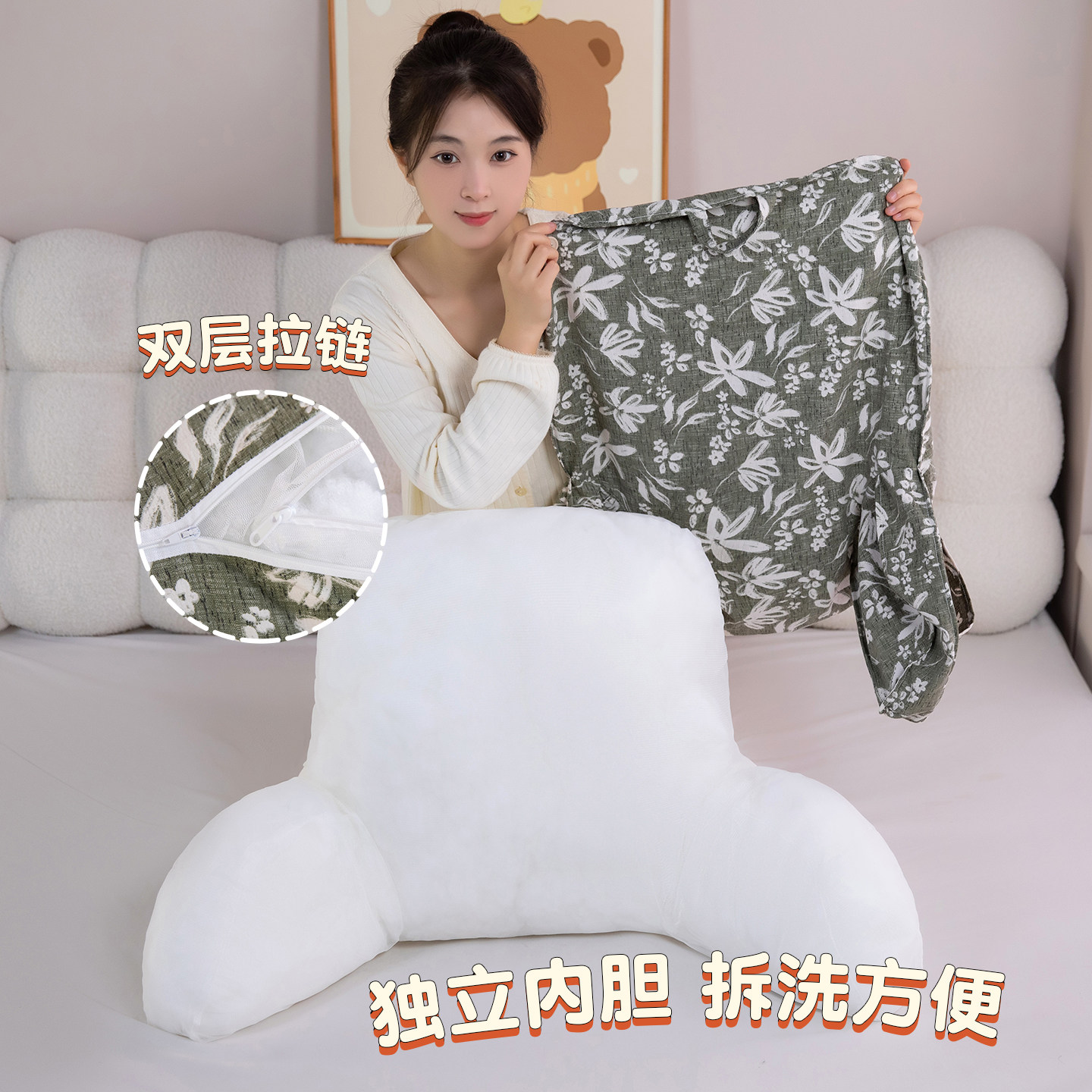 小奶包二代床头软包靠垫靠背抱枕Pro升级版免洗皮全包防尘套绑带