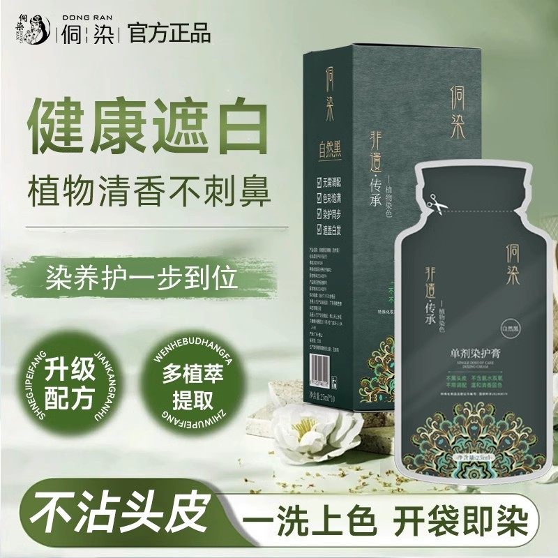 侗染单剂染发膏纯天然植物染发剂一洗黑茶色男女官方旗舰店不沾