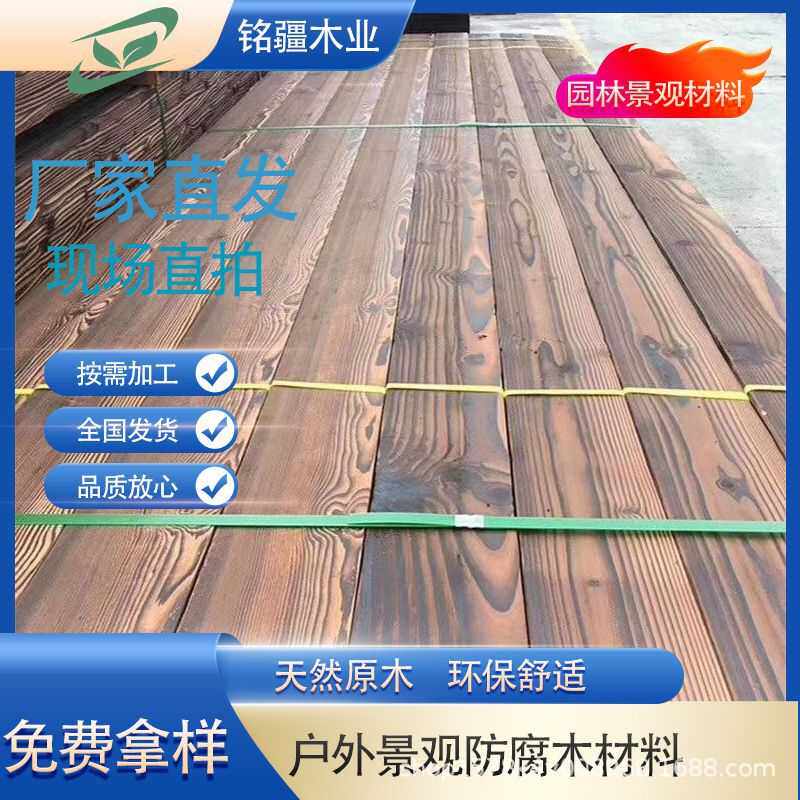 碳化木板材花旗松炭化火烧木方木条樟子松深度碳化木户外园林木材