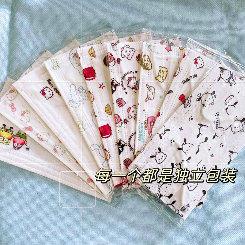 卡通可爱蜡笔小新马赛克樱桃小丸子helloKitty小猫印花口罩无纺布