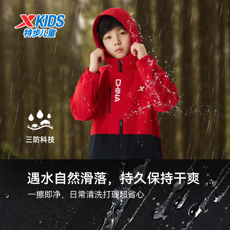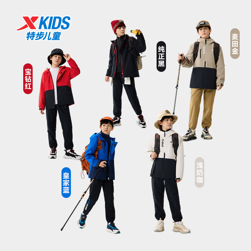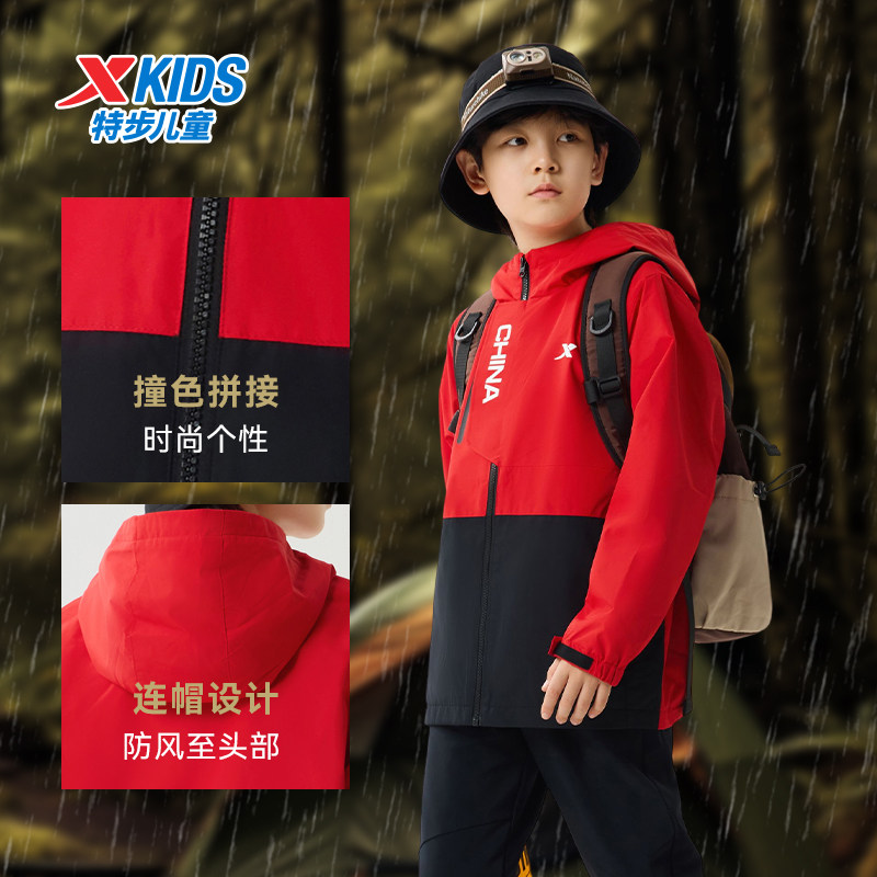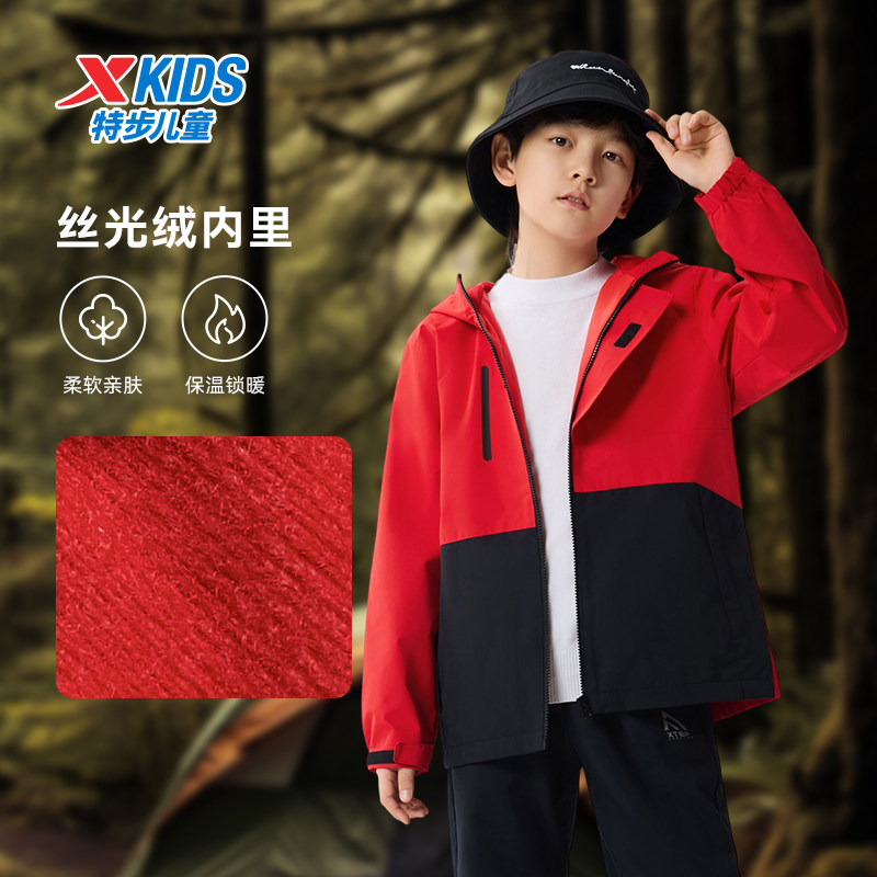 特步童装男童保暖风衣春秋季儿童外套中大童运动休闲保暖舒适风衣