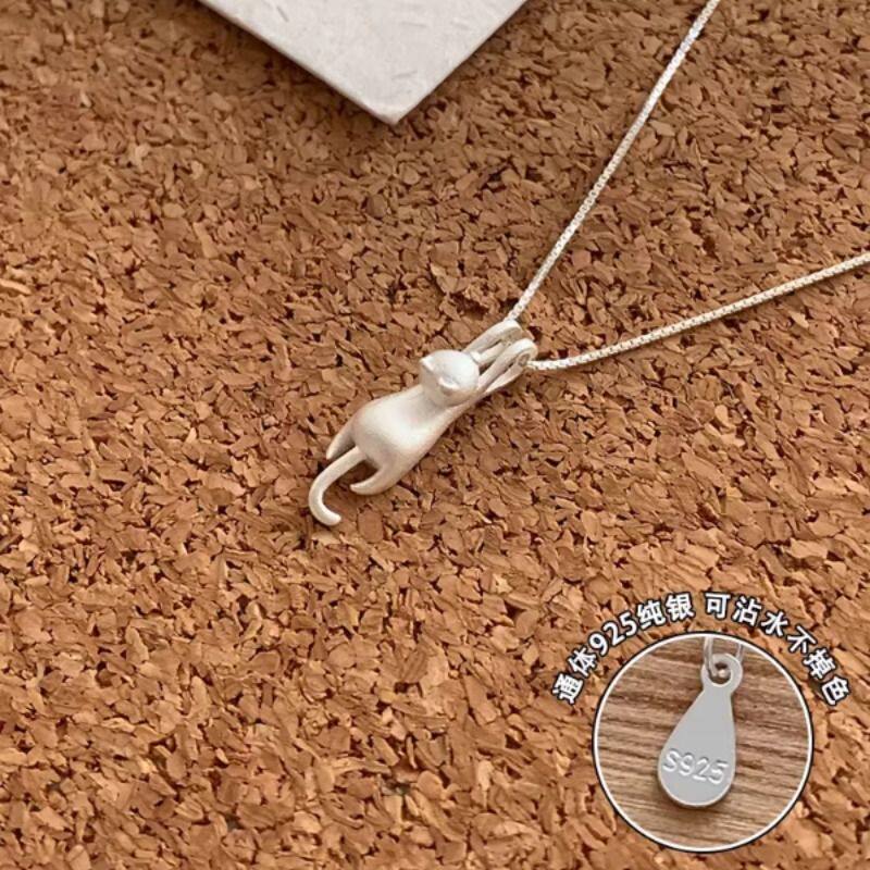为晚纯银猫咪锁骨链银饰小众艺术感项链2026新款女可爱高级感配饰